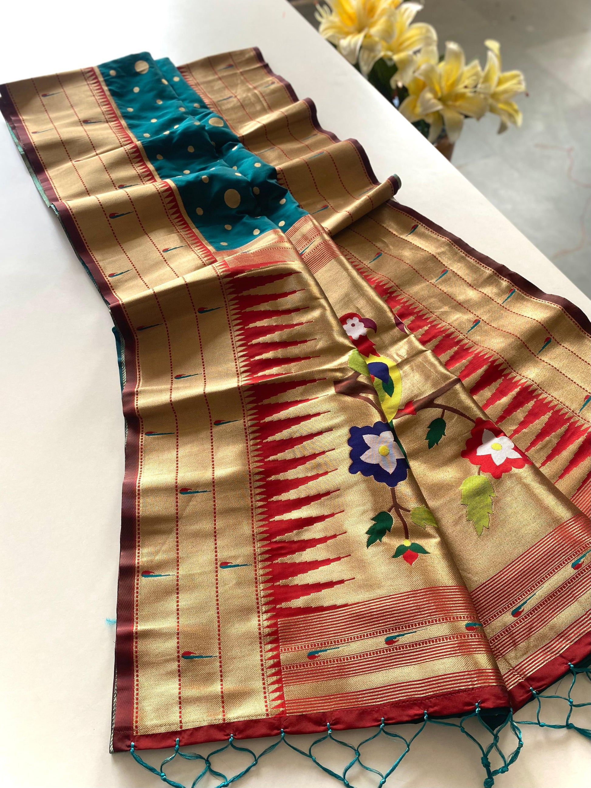 Festive Paithani Silk Saree – Polka Design & Parrot Embroidered Pallu