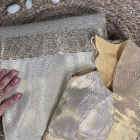 Handwoven Golden Tissue Silk Saree – Classic South Indian Style