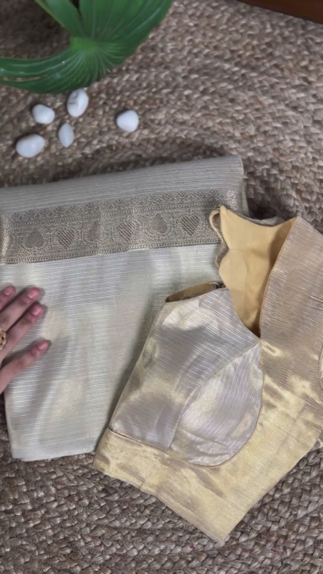 This timeless golden tissue silk saree exudes royal charm with its subtle sheen and broad zari borders. A perfect blend of grace and tradition for bridal or festive looks.